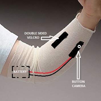 Positioning button spy camera into sleeve allows covert live video transmission and photo taking.